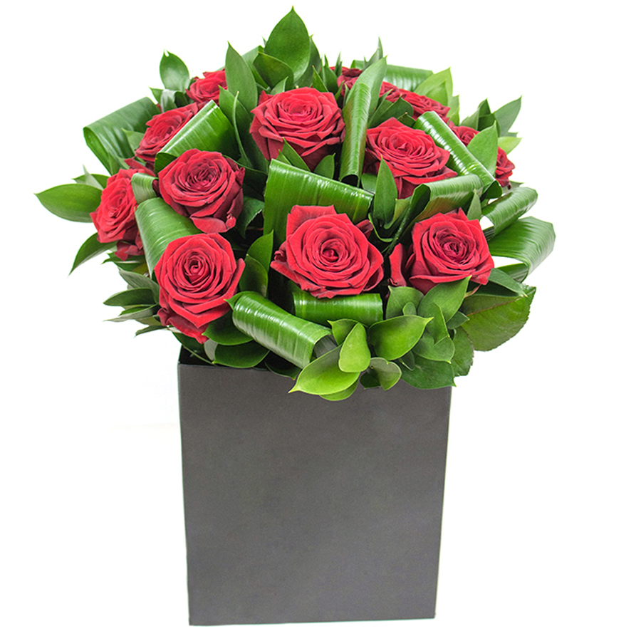 Celebrate love and beauty with our Charming Red Roses & Greenery Bouquet. This delightful arrangement features vibrant red roses intertwined with fresh aspidistra leaves and elegant ruscus, creating a visually stunning display.